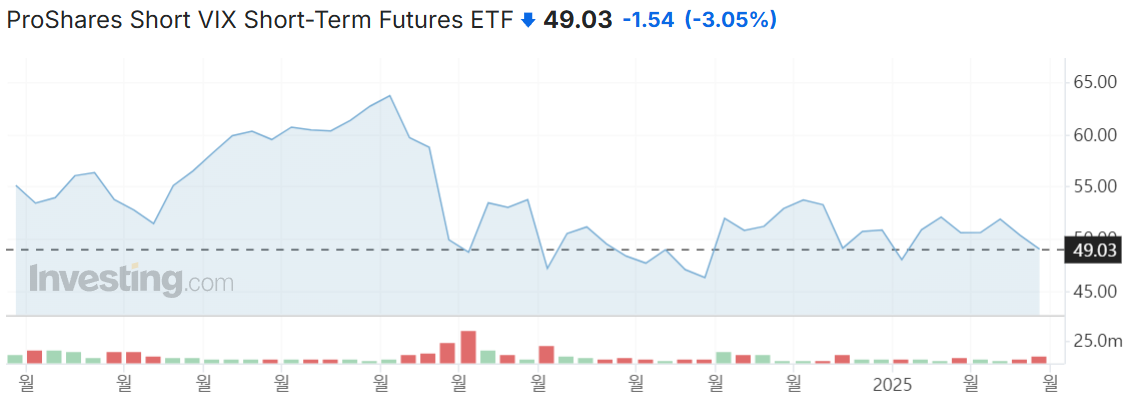 SVXY(ProShares Short VIX Short-Term Futures ETF): VIX 지수를 반대로 추종하는 ETF (VIX 하락 시 상승)